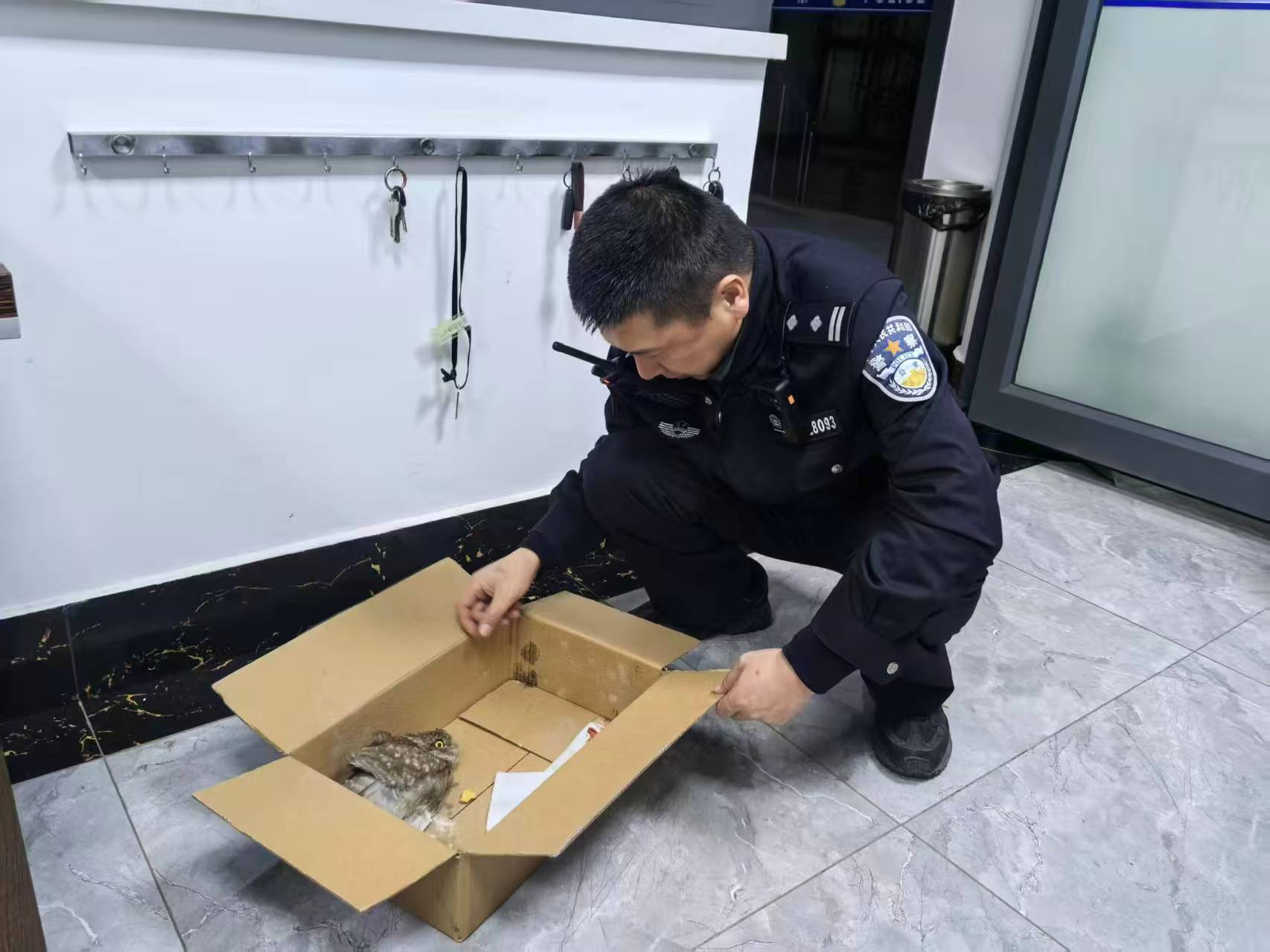 次日下昼1点,林业部门的使命主说念主员赶到派出所。经专科东说念主员仔细查验和辨别,这只猫头鹰是一只未成年的东方角鸮,属于国度二级保护动物。小家伙外在无表示外伤,但体魄较为病弱,需要带回进行专科的养护和不雅察。