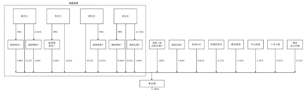 公司香港上市前的股东架构中: