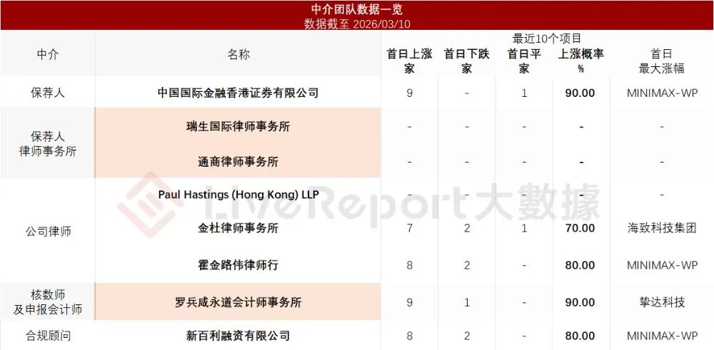 ]article_adlist-->据LiveReport大数据统计,创想三维中介团队共计8家,其中保荐人1家,近10家保荐项目数据表现出色;公司律师共计3家,综合项目数据表现尚可。整体而言中介团队历史数据表现良好。