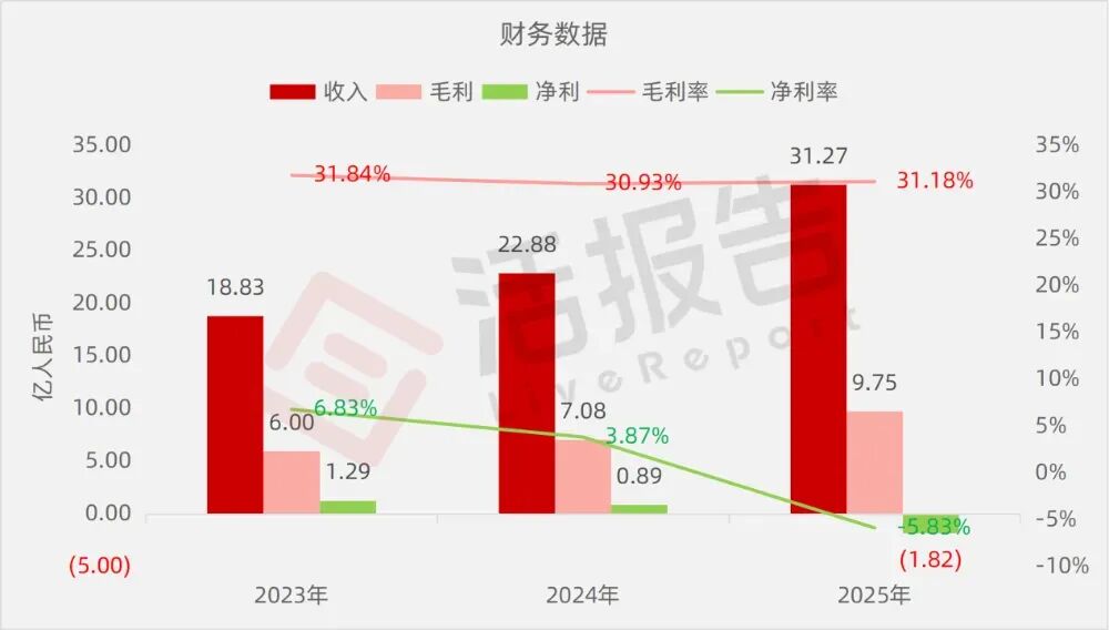 收入分别约为人民币18.83亿、22.88亿、31.27亿,2025年同比+36.65%;