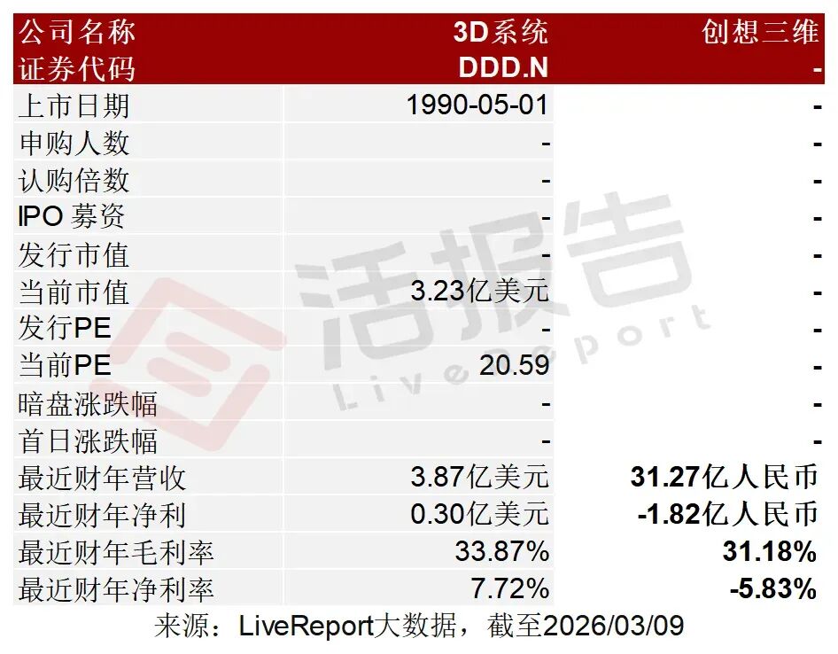 同行业IPO可比公司:3D系统(DDD.N)